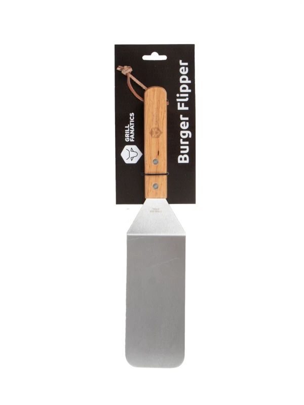 RVS burger flipper met houten handgreep, voor het gemakkelijk keren van je burgers en andere stukken vlees!