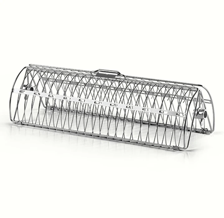 Dit rvs-draaispitrek is duurzaam en eenvoudig schoon te maken. Het unieke dubbele ontwerp heeft een grotere capaciteit om delicate etenswaren op z’n plaats te houden. Voor het gelijkmatig braden van hele vis, spareribs, kip, lamskoteletten en nog veel meer. Deze accessoire past op de meeste draaispitstangen.