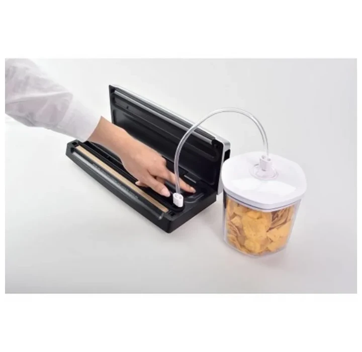 Ideaal voor het professioneel op voorraad houden van voedingswaren. Houdt levensmiddelen tot vier keer zo lang vers en bespaart tijd, geld en moeite. De SOLIS Vac Smart is te gebruiken met folie en zakken met een breedte van maximaal 30 cm. Ook heeft deze vacuümmachine een slangaansluiting voor het vacumeren van voorraadbussen.